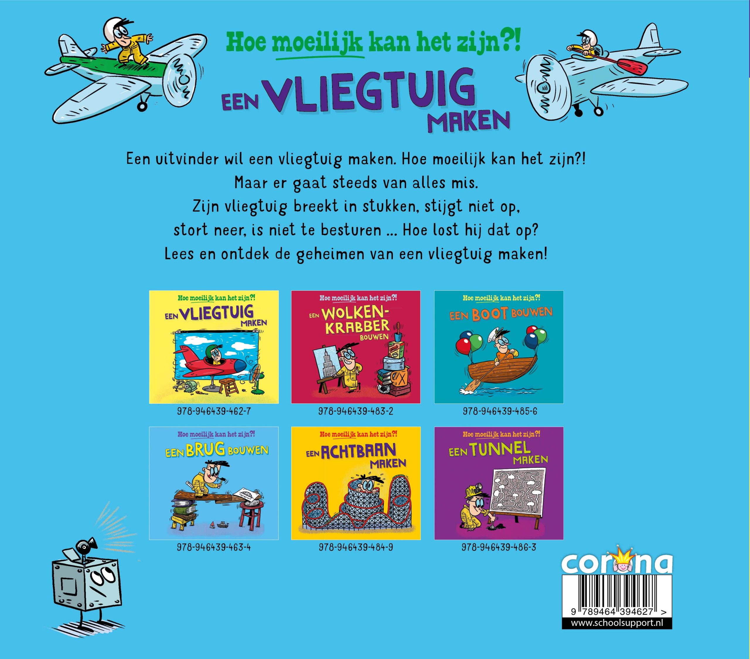 Een uitvinder wil een vliegtuig maken. Hoe moeilijk kan het zijn?! Maar er gaat steeds van alles mis. Zijn vliegtuig breekt in stukken, stijgt niet op, stort neer, is niet te besturen… Hoe lost hij dat op? Lees en ontdek de geheimen van een vliegtuig maken!
