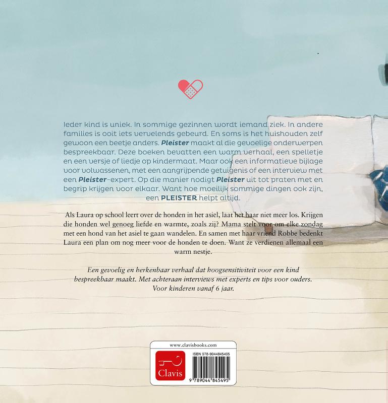 Ieder kind is uniek. In sommige gezinnen wordt iemand ziek. In andere families is ooit iets vervelends gebeurd. En soms is het huishouden zelf gewoon een beetje anders. Pleister maakt al die gevoelige onderwerpen bespreekbaar. Deze boeken bevatten een warm verhaal, een spelletje en een versje of liedje op kindermaat. Maar ook een informatieve bijlage voor volwassenen, met een aangrijpende getuigenis of een interview met een Pleister-expert. Op die manier nodigt Pleister uit tot praten met en begrip krijgen voor elkaar. Want hoe moeilijk sommige dingen ook zijn, een PLEISTER helpt altijd.