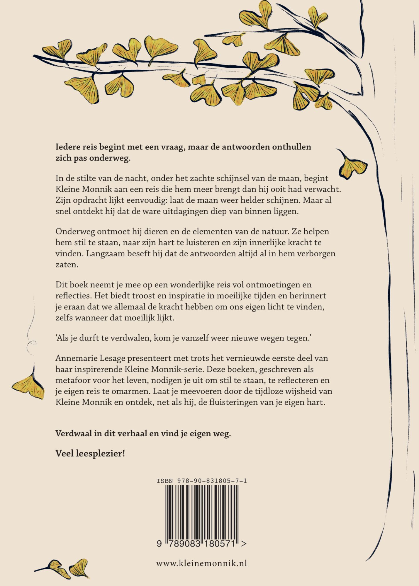 Annemarie Lesage presenteert het vernieuwde eerste deel van haar inspirerende Kleine Monnik-serie. Deze boeken, geschreven als metafoor voor het leven, nodigen je uit om stil te staan, te reflecteren en je eigen reis te omarmen. Laat je meevoeren door de tijdloze wijsheid van Kleine Monnik en ontdek, net als hij, de fluisteringen van je eigen hart.