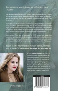 In Leven zonder filter vertelt Fleur openhartig en met zelfrelativering over de zoektocht naar haar gebruiksaanwijzing. Hoe ze ontdekte dat ze hoogsensitief is en zich daar aanvankelijk tegen verzette, uit schrik voor labels en zweefteven. Tot ze ondervond dat de eigenschap naast nadelen ook voordelen kent.