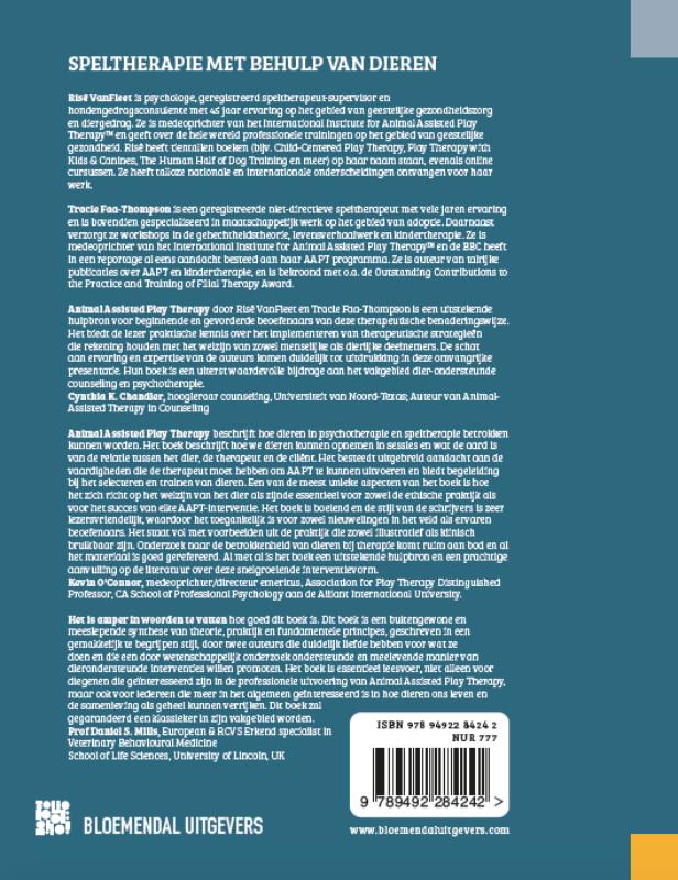Animal Assisted Play Therapy beschrijft hoe dieren in psychotherapie en speltherapie betrokken kunnen worden. Het boek beschrijft hoe we dieren kunnen opnemen in sessies en wat de aard is van de relatie tussen het dier, de therapeut en de cliënt. Het besteedt uitgebreid aandacht aan de vaardigheden die de therapeut moet hebben om AAPT te kunnen uitvoeren en biedt begeleiding bij het selecteren en trainen van dieren. Een van de meest unieke aspecten van het boek is hoe het zich richt op het welzijn van het dier als zijnde essentieel voor zowel de ethische praktijk als voor het succes van elke AAPT-interventie. Het boek is boeiend en de stijl van de schrijvers is zeer lezersvriendelijk, waardoor het toegankelijk is voor zowel nieuwelingen in het veld als ervaren beoefenaars. Het staat vol met voorbeelden uit de praktijk die zowel illustratief als klinisch bruikbaar zijn. Onderzoek naar de betrokkenheid van dieren bij therapie komt ruim aan bod en al het materiaal is goed gerefereerd. Al met al is het boek een uitstekende hulpbron en een prachtige aanvulling op de literatuur over deze snelgroeiende interventievorm.