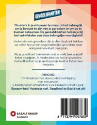 Om sterk in je schoenen te staan, is het belangrijk om je bewust te zijn van je gevoelens en om ze te kunnen beheersen. De gevoelskaarten helpen je bij het ontwikkelen van deze belangrijke vaardigheid! Verken de vele gevoelens die je elke dag kunt hebben en oefen hoe je van ongemakkelijke gevoelens naar aangenamere kunt overgaan. Als je goed kunt benoemen wat je voelt, leer je jezelf beter begrijpen. Je merkt dan ook hoe je gevoelens invloed hebben op je gedrag en je leert er beter mee omgaan.